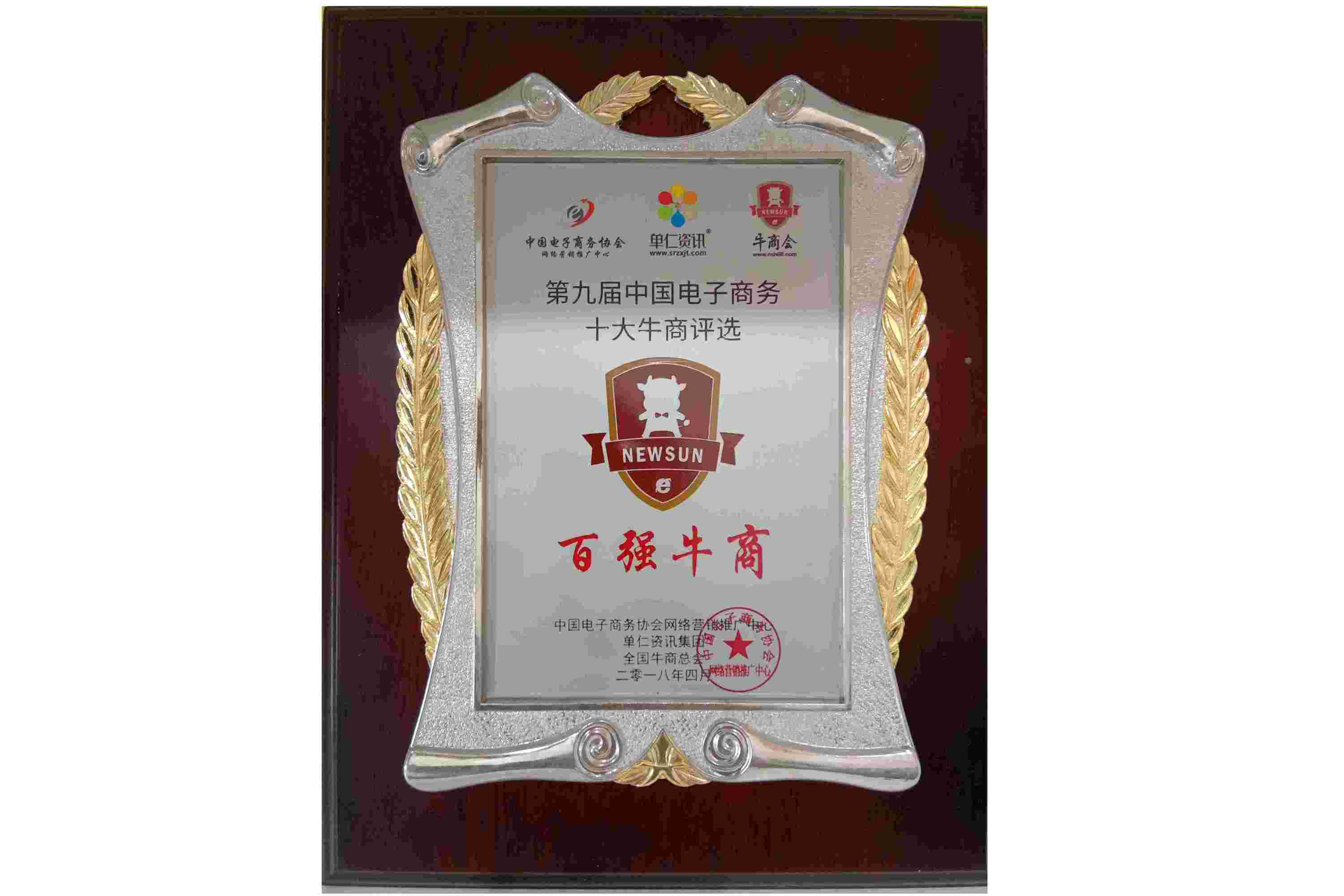 2018年4月安防工程商成都萬(wàn)全電子總經(jīng)理李佳勇先生在全國(guó)電子商務(wù)十大牛商評(píng)選活動(dòng)中,獲得“全國(guó)百?gòu)?qiáng)牛商”稱(chēng)號(hào)。